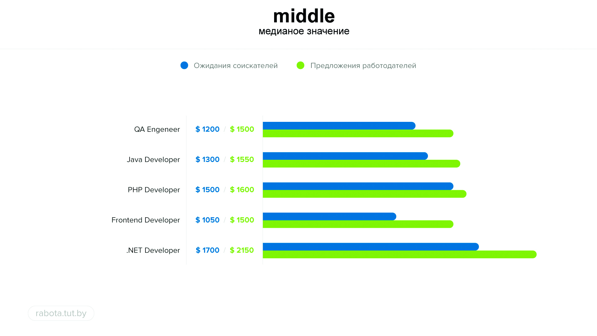 Что же касается Senior разработчиков, то более опытные специалисты ожидают заработную плату выше, чем предлагают белорусские компании:
