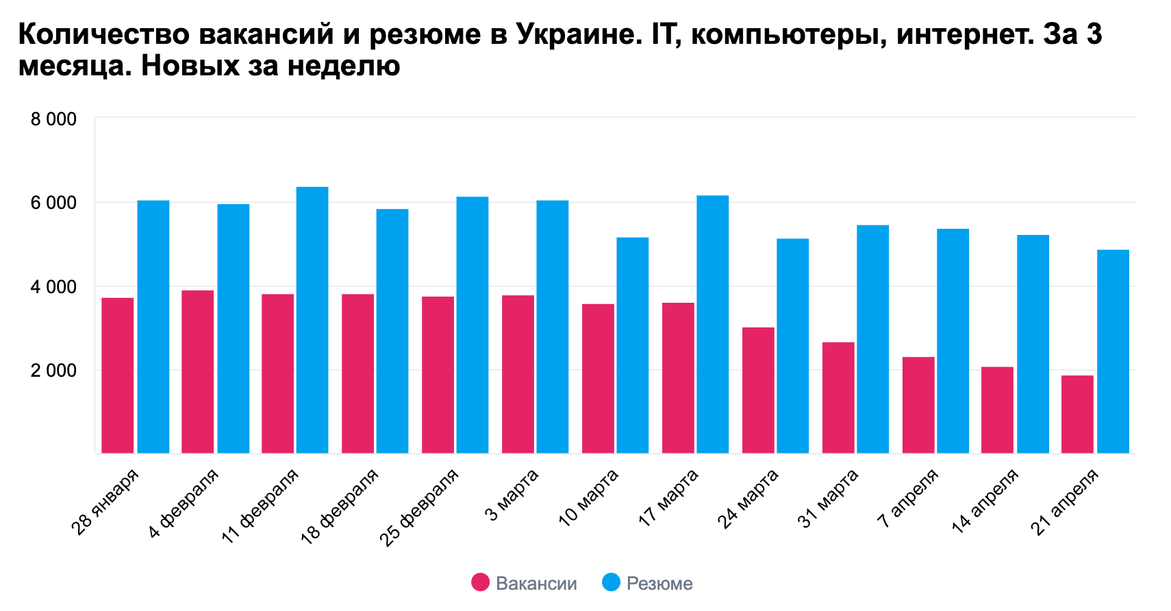 По данным Work.ua количество ремоут-вакансий увеличилось почти в 2 раза, а количество откликов на такие предложения выросло в 4 раза.