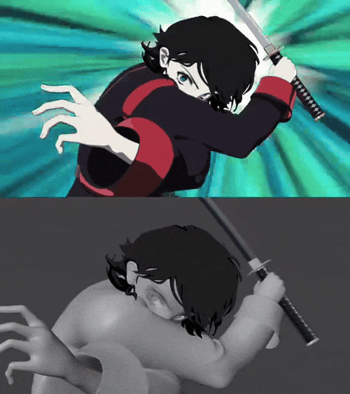 Анимешная тян с катаной, созданная с помощью Blender Grease Pencil