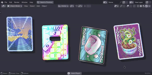 Волшебные карточки как в Балатро, созданные в Blender