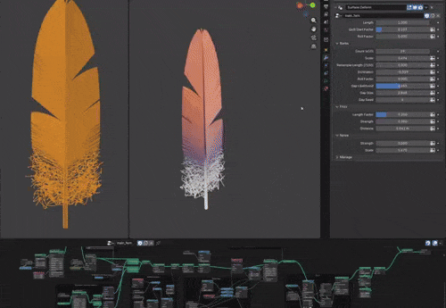 Позволяет процедурно генерировать перья разных размеров и форм.