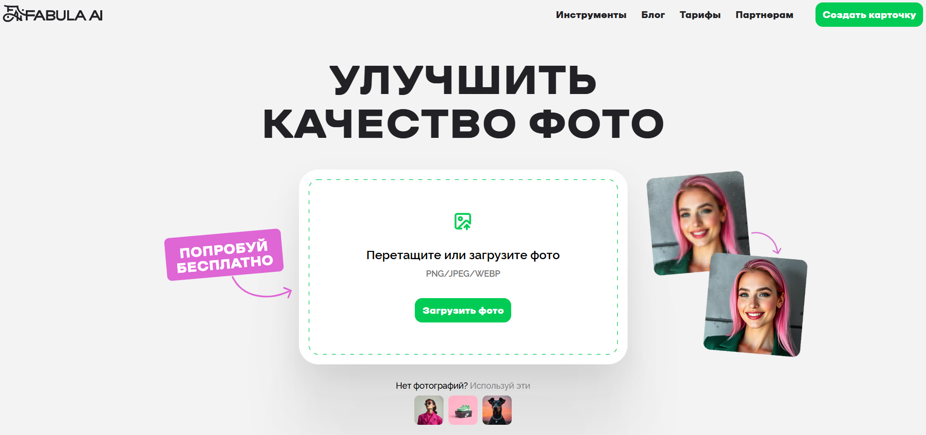 - Fabula AI – сайт специализируется на создании инфографики и карточек для маркетплейсов с использованием ИИ.