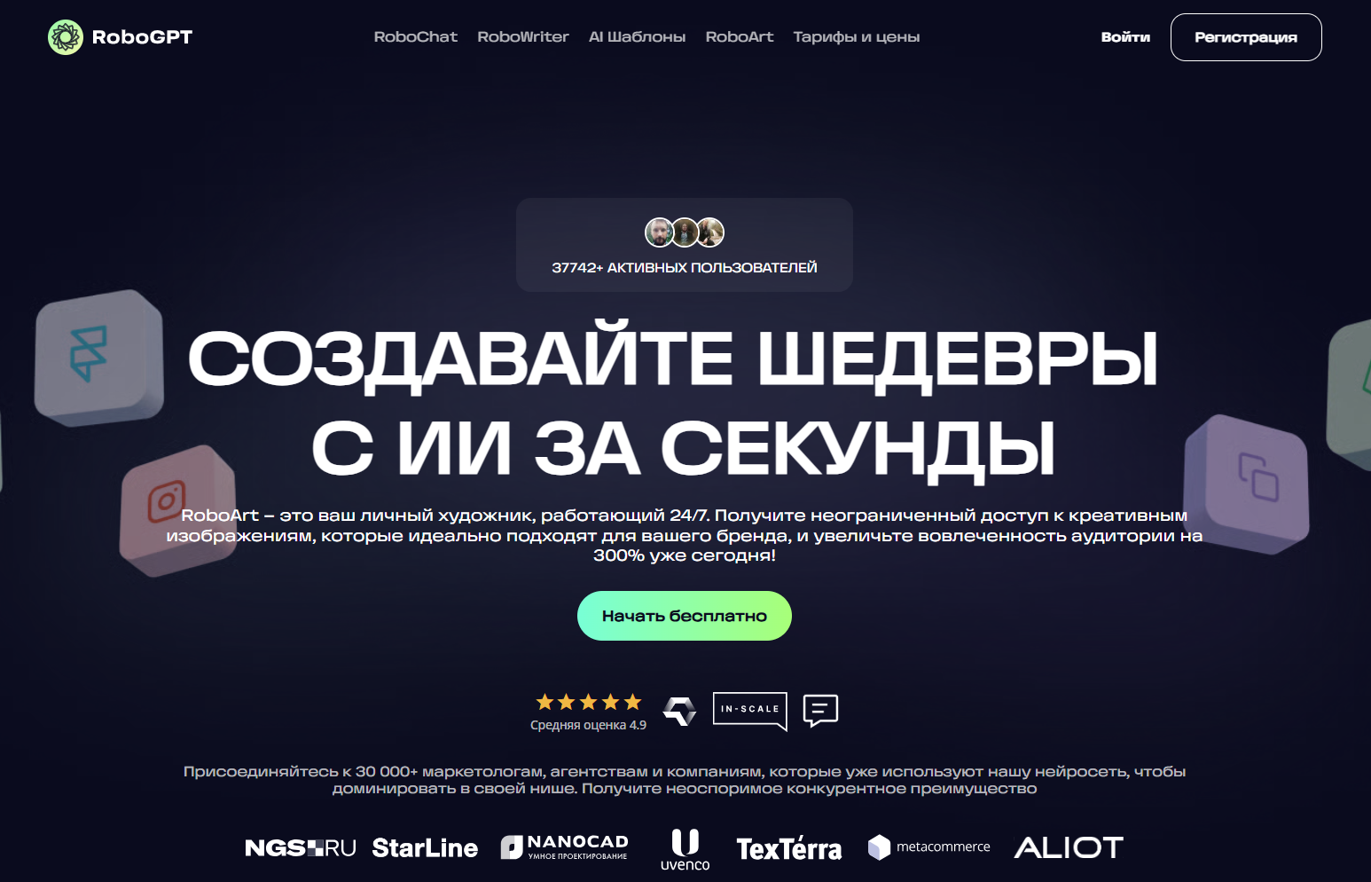 - RoboGPT — нейросеть позволяет не только создавать изображения по тексту, но и улучшать фото через встроенный редактор.