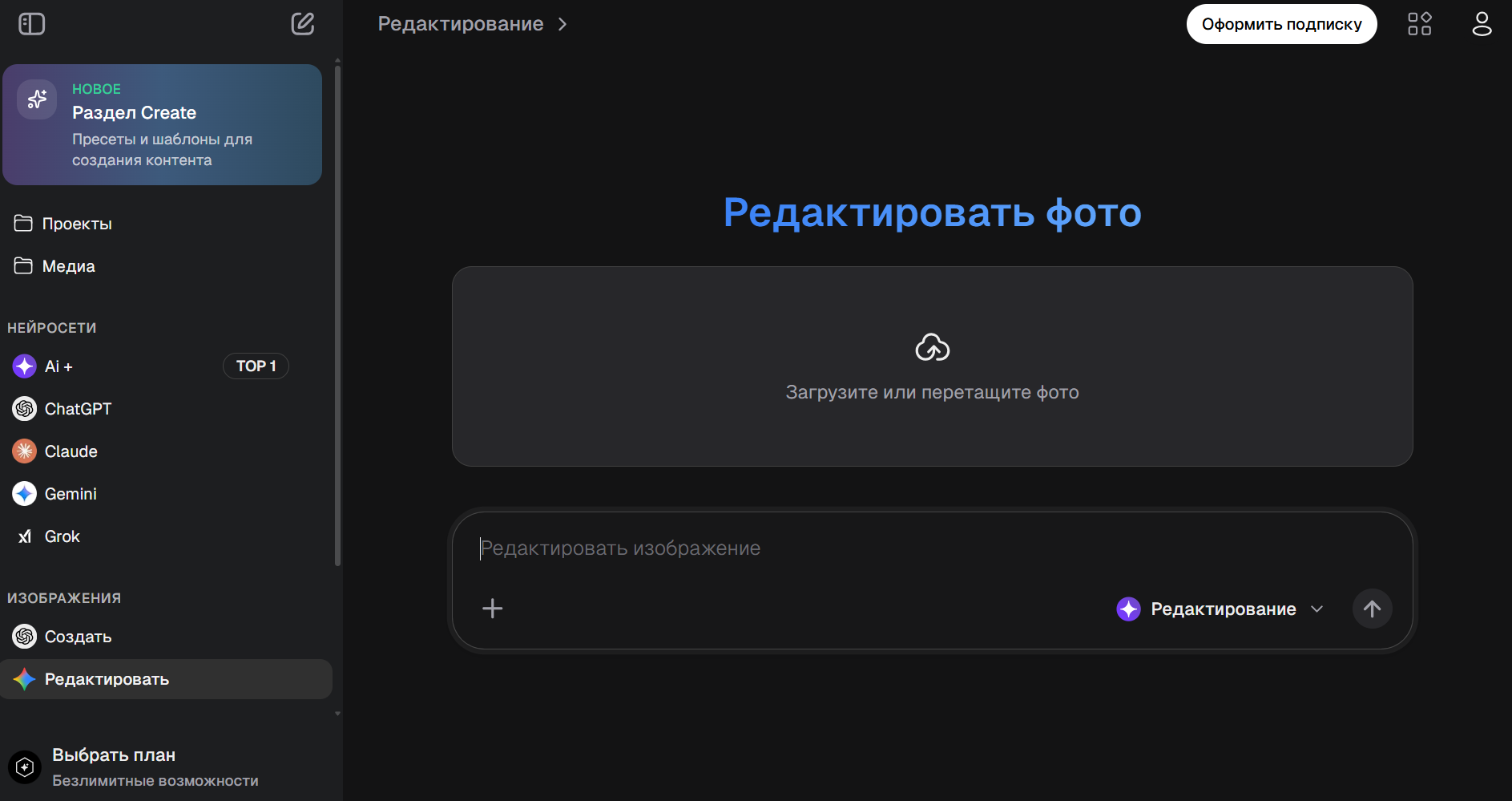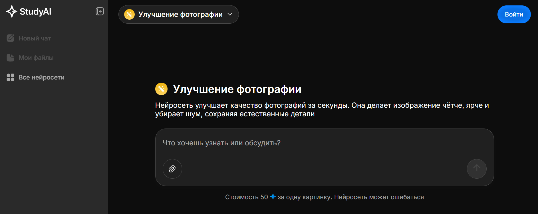 - Study AI — платформа с доступом к множеству нейросетей, в том числе для работы с фото.