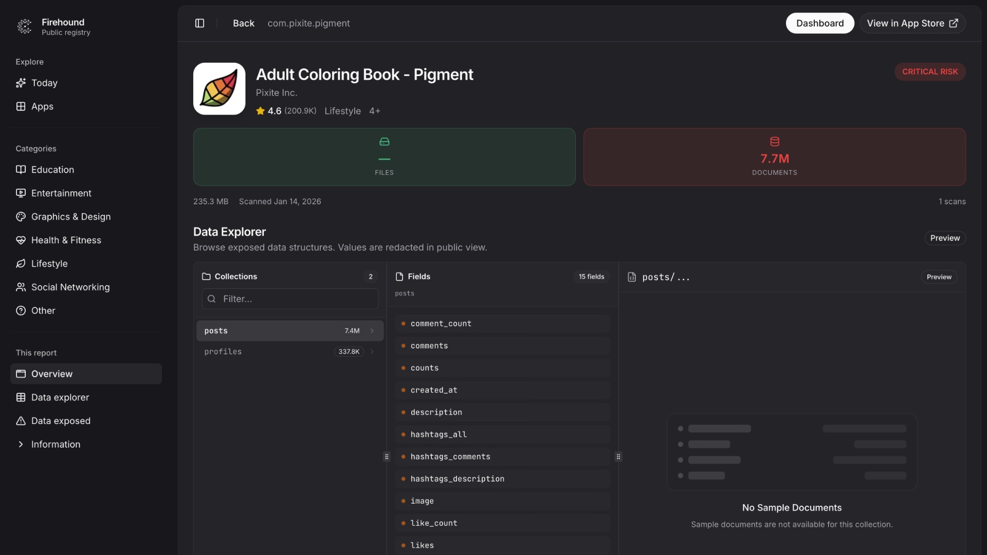 Один из лидеров антирейтинга — приложение Adult Coloring Book – Pigment. У него более 7,7 млн документов оказались доступны без какой-либо аутентификации.
