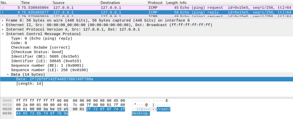 Как вы видите, в итоге мы имеем 2 ICMP-сообщения: одно с командой и другое с результатом.
